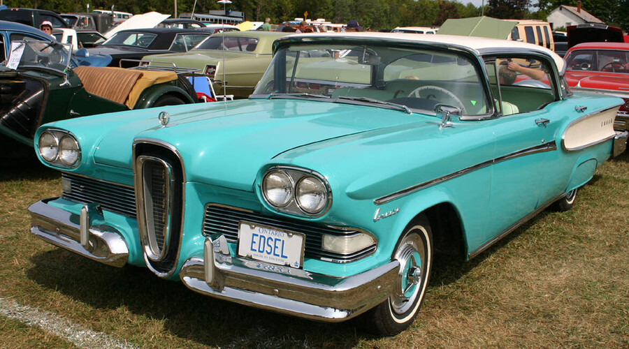 Autem pro dnešní den je Edsel Pacer, historicky pravděpodobně největší marketingový přešlap Fordu. Samotná myšlenka vytvořit luxusnější divizi značky byla sice poměrně logická, ale když se k tomu přidala nepříliš zvládnutá propagační kampaň a značně diskutabilní vzhled přídě s maskou, které se oficiálně přezdívalo “horse collar” (chomout) a neoficiální přezdívky raději nebudeme rozmazávat, a v neposlední řadě i mizerná spolehlivost, bylo nevyhnutelné, že se technicky promyšlené a podařené auto téměř neprodávalo a Ford na něm prodělal několik stovek milionů dolarů. Podle Henryho Forda II. byl krach Edselu moment, kdy se Ford nejvíce ve své historii přiblížil krachu.