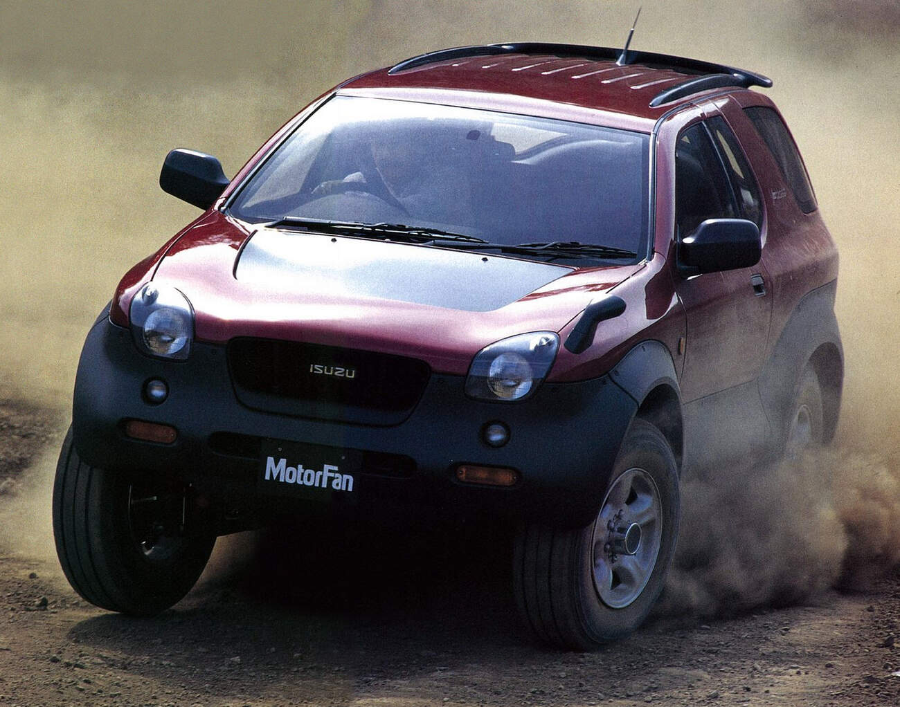 Tahle limitka se tváří jako další nudné SUV, ale nenechte se zmást! Konstrukčně jde o poctivý offroad s žebřinovým rámem a redukční převodovkou. Dokonce i systém pohonu všech kol, ovládaný počítačem a hromadfou senzorů, které umí přibržďovat jednotlivá kola, je poplatný těm nejlepším terénním zásadám. A že Isuzu ví, co dělá. Jejich offroady, zejména pracovní pickupy, jsou horkým zbožím na celé východní půlce mapy světa a setkat se s nimi můžete i u nás. O pohon se staraly výlučně potentní šestiválce a odvážný design jej řadí po bok vyjímečných malosériovek, jako byly Isuzu 117 coupé a Isuzu Piazza.