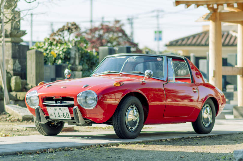 Někteří z vás ji možná znáte z posledního dílu série Grand Tourismo, ostatním přijde jako Toyota 2000GT vypraná na 90°. Šlo o vůbec první sportovní vůz značky Toyota s dvouválcovým, vzduchem chlazeným boxerem pod kapotou. Pod konstrukčním řešením se podepsal jistý Tatsuo Hasegawa, který ještě před přeměnou Japonska z císařství vycházejícího slunce na perpetuální comic-con stavěl letadla s alternativním přistávacím postupem. Díky němu bylo v kosntrukci využito velkého podílu hliníku, což pomohlo vozu s nevelkým výkonem 45 koní ke sportovním ambicím. Dokonce měla malá Toyota sundavací díl střechy ještě dřív, než to někoho napadlo u brouka 911. Díky lehounké konstrukci z velmi tenkého ocelového plechu s typicky šedesátkovou antikorozní úpravou jich dnes bohužel mnoho nezbývá a tak se kapesním Ferrari můžeme těšit pouze z monitorů.