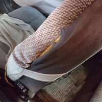 Interiér – ty Fordy z devadesátek prostě nemají trvanlivý interiéry nebo se k temu lidi nechovali pěkně. Sedačka řidiče má v sobě navrtanou nějakou divnou loketku, látka je všude uvolněná a nedrží (vlastně držela na místě jen díky „nátělník“ potahům přetažené přes sedačky). Zadní strana sedaček, což je vytvarovanej karton potaženej látkou, je v neopravitelném stavu – látka se odlepuje. Síťka uvolněná a potrhaná. Dveřní výplně jsou volné a odlepují se od podkladu. Koberec kufru chybí. Volant je už pěkně gumovej a má v sobě divnej vkus (hladový řidič?). Navíc je v interiéru cítit vlhkost. Oproti Sierra interiéru jsem si řekl, že se mi nechce dávat zase 20 000 kč za komplet přečalounění a rád bych sehnal jinej, v lepším stavu, abych auto zachoval co nejblíže originál stavu.