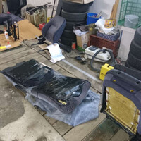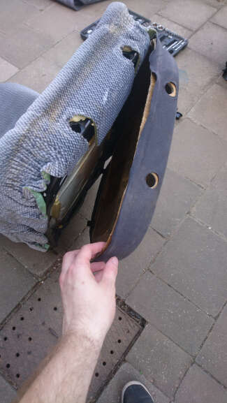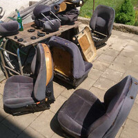 Teď už k samotné renovaci sedaček. Napříč tomu, že mám téměř tři sady, tak žádná není 100% použitelná Přední sedačky (všecky sady) mají záda z takového tvrzeného kartonu potaženého látkou. Časem lepidlo přestalo lepit a látka se odtrhla. Nápad je takovej, že sedačky slovenský a ostravský rozeberu a udělám jednu slušnou sadu a tu látku přilepím zpět.