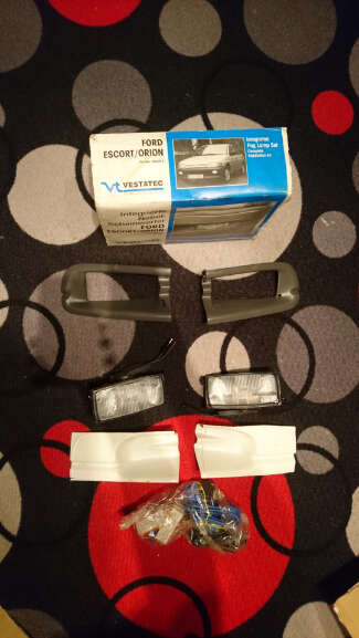 Ještě jsem na německém ebayi zahlédnul dobové příslušenství na Escorta/Oriona – mlhovky od výrobce VESTATEC, nepoužité ještě v origo balení. Tovární mlhovky se dávaly do spodku nárazníku a vypadalo to prapodivně. Tyhle se montovaly výš, do mřížky nárazníku. Řešení mi to přišlo elegantní a říkal jsem si, že tohle přece v Česku nikdo nemá. Neodolal jsem a za 75 euro jsem měl mlhovky doma i s dopravou.
