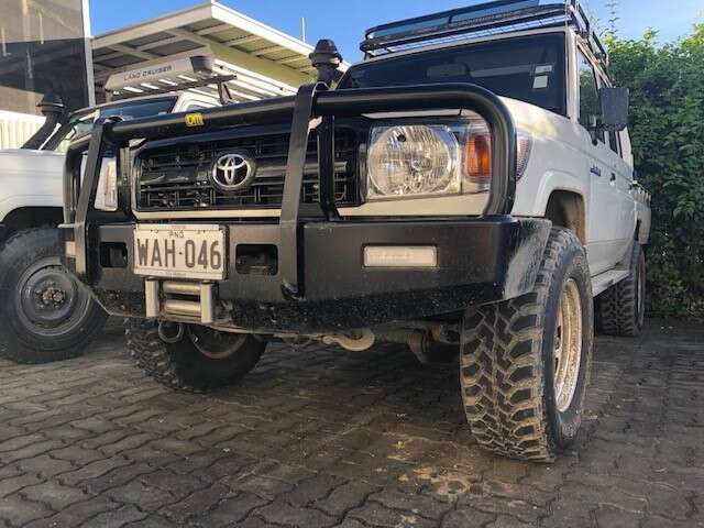 Ten zaprvé vypadá úžasně (za předpokladu, že máte rádi zemědělské stroje ze sedmdesátých let), za druhé se na něj dá naložit hromada věcí, a za třetí do toho naložíte i nějaké ty lidi když není zbytí. Samozřejmě, nevýhod to má pár taky. Asi největší při provozu ve městě je ta, že vám do korby zaparkovaného auta kolemjdoucí domorodcí furt hážou odpadky, případně plivou betel, takže auto vypadá, že jste na korbě zavraždili mateřskou školku. Flusance betelu jsou totiž krvavě rudé. Když jsem poprvé přijel do Port Moresby, byl jsem neskutečně překvapen domnělou mírou násilí – všude na chodnících krvavé fleky. Doom hadr. Než mi někdo vysvětlil o co jde neměl jsem z toho moc dobrý pocit. To se sice nezlepšilo, ale zjistil jsem, že krev se z chodníku umývá podstatně lépe než tohle.