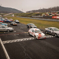 V neděli jsme se probudili do mrazivého rána. Nijak jsme se nezdržovali, a vyrazili rovnou na okruh. Jak teď píšu tyto řádky, úplně se mi vrací ten pocit nervozity a adrenalinu. Startoval jsem první, a ještě nikdy na mosteckém okruhu nejel. Na místě proběhla úvodní rozprava, vyzvedl jsem transponder pro načítání zajetých kol, upevňovali jsme GoPro, dolaďovali jsme komunikaci, a už vidím že auta vyjíždějí do úvodního zaváděcího kola. Rychle jsem naskočil do auta, a také se připojil. Teplota byla pod nulou, okolo dráhy se na trávě leskla jinovatka, a na dráze samotné nezřídka taky. Ne zrovna ideální podmínky pro letní lepivé Federaly.