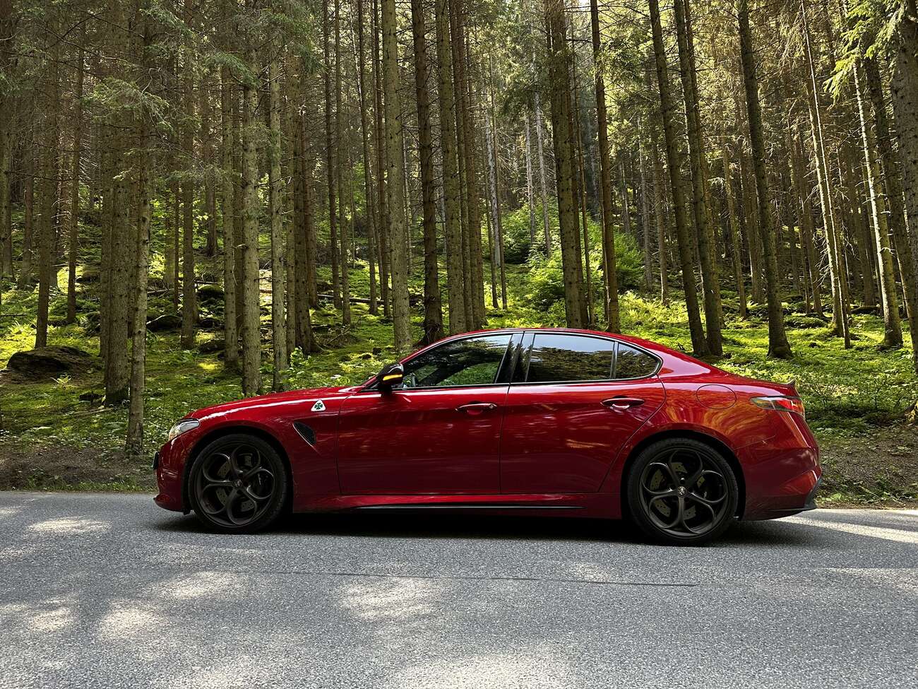 Auto dostalo přední PPF folii proti šutrům, aby ochránilo krásný rudý lak "rosso etna" ve kterém vynikne opravdu nadčasový design auta a skvělé proporce. Ještě u chlapů z AR.net repelent proti PČR a mohlo se vyrazit. Dynamicky tomu není co vytknout (0-100 za 3.9s – já však nejlépe za 4.2s) a suverénní je i při dotlačení maximální povolené rychlosti v ČR na dvojnásobek – navíc nectí německou gentlemanskou dohodu a není tak omezena na obligátních 250km/h ale na 307km/h tam se ale už spíše doplazí. Popravdě řečeno ani jsem maximálku nevyzkoušel, jednak cesta k ní není zdaleka tak suverénní jako u Audi R8 kde k tomu stačí daleko méně "německé" dálnice a druhak tomu brání jediná výrazná slabina auta a to je pocit z brzd. Jsou obecně podle mnoha uživatelů "nic moc" a ještě k tomu brake-by-wire vytváří pocit pomalého nástupu, který já osobně nemám vůbec rád (ale jsem obecně spíš takový brzdílek možná na to má lepší řidič jiný názor). Co je opak skvělé je pocit při řízení, které je krásně strmé a i kýchnutí s rukama na volantu může být kritické a opravdu skvělý podvozek platformy giorgio? Tenhle podvozek pro alfu a maserati je asi jedním z hlavních důvodů, proč Giulia jezdí tak, jak jezdí. Osobně jsem se ještě nesetkal s tak velkou změnou při nastavení tlumičů, které jsou při comfortu velice pohodlné a tvrdé v race modu. Co se týče spotřeby ta se pohybuje od 7 do 15 litrů kde dlouhodobý průměr mám 13,2 – V6 má vypínání poloviny válců při režimu eco a opravdu funguje, byť v něm auto za celý život bylo akorát dvě cesty z Berlína. Motor je navíc i dle servisáků z Imofy nadprůměrně spolehlivý pokud včas měníte olej a nezanedbáváte servis.