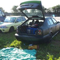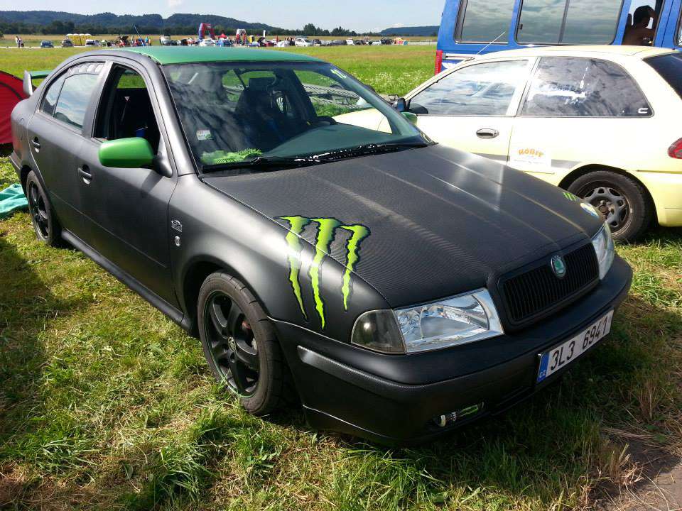 Mé první auto byla z donucení rodičů Octavia 1.generace s motorem 1,6SR a brutálními 74kw. Popravdě jsem „ofci“ ani nechtěl, ale rapid 136 se doma nesetkal s pochopením, protože:“ auto není bezpečné, je staré“ a kdesi cosi. Protože jsem byl vzorný syn tak jsem couvnul a sehnal jsem na tu dobu za hezké peníze právě onu oktávii. Jak to tak bývá, první auto je první auto a tak jsem si ji začal tunit a různě upravovat k obrazu svému. Byla to doba, kdy pro mě neexistoval jiný sport než královna motosportu rally. Na auto za nedlouho přibylo křídlo z wrc, mřížky do oken a skořepinové sedačky s tříbodovými pásy. Pořád to ale nesplňovalo mé tehdejší představy o rally autě na silnici tak jsem začal upravovat dál. Po stavitelném podvozku, stavitelných kostech stabilizátoru, zadní kotoučové nápravě z tdi, tvrdých silentblokách, různých rozpěrných tyčích a spoustě dalších blbin jsem z auta vyhodil zadní sedačky a čalounění z kufru a stejně tak se ve jménu závodního krutopřísného zvuku odporoučel i zádní tlumič výfuku. Po několika málo týdnech jsem si uvědomil, že tudy cesta nevede, že než dojedu z intru domu mám hlavu jako střep a auto láká až moc pozornost policie. Čalounění se tedy vrátilo, zadní sedačky ve jménu užitkovosti též, výfuk jsem nahradil kouskem vyrobeným na zakázku od svodů 4-2-1 až po lazený tlumič šikovně implementovaný do obalu tlumiče z oktávky, přibylo sportovní sání, regulátor tlaku paliva a začalo se pracovat na tom, co chtěl snad každý 18ti letý kluk tehdejší doby – aparaturou a neonama :D. Kompletní podsvícení společně s majáky ze stíhacího passatu v masce způsobovali kolemjdoucí epileptické záchvaty a mě vynesly bramborovou medajli na tuning sraze v Hoškovicích. Mohutná aparatura 10+1 se dvěma zesilovači, která mě stála 1200kč vytloukala okna v širokém okolí, ale ubrala oktuli to, pro co si ji většina majitelů pořizovala a tím byl velký kufr. Tečka na konec byl matný černý lak se zelenou střechou a nálepky tehdy děsně frčícího monsteru :D.