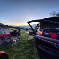 Naše trasa nás vede dál za Bihač směrem k dalšímu kontrolnímu bodu. Ten je umístěný hned na bráně do národního parku Una, který se pyšní asi 10 km dlouhou legální off-roadovou stezkou. Když se však po vystoupání masivu nad městem a minutí cedule s optimistickým nápisem “for off-road car only” dostáváme na místo, je závora zavřená. Hodiny ukazují deset minut po dvacáté a otevíračka parku byla jen do osmi. Dnes si holt musíme najít nocleh tady. Nabízela by se louka přímo před vjezdem, ale zde už je několik desítek dalších posádek a my bychom se dnes rádi v klidu vyspali. Sjíždíme tak rozbitou stezkou dál z kopce a asi po kilometru nacházíme ideální louku se skvělým výhledem směrem k Bihači. Ráno to bude krásné panorama.