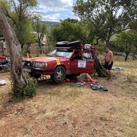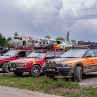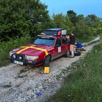 Než se zbytek probudí, vyrážím na ranní cigáro s Redbullem, aneb moji standardní gumbalkanovou snídani. V kempu už se probouzí i další posádky a ne zrovna nadšená ostraha stojící nad souvislou čárou oleje, vedoucí z jednoho z protějších stání směrem k bráně, značí, že někteří z letošních účastníků se dokonce vydali na cestu. Daleko teda nedojeli, prý stojí nahoře u silnice a snaží se s tím něco udělat. K našemu stání žádná čára oleje nevede, dokonce ani kapky na zemi nevidíme, což však neznamená, že nejsme v průseru. Když se podívám na některé části Bedny, která jela nejvíc času za Tůlejtem, je jasné, že dnes máme co dělat.