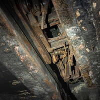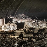 Děláme pár fotek a vydáváme se hlouběji do nitra hory. Místy je to trochu adrenalinovější. To když s autem, co má menší nadváhu a mizerný rejd, kličkujeme mezi chybějícími kryty servisních tunelů a chodeb o "patro” níže. Ale i tak se postupně probojováváme čím dál hlouběji. Náš postup zastavuje až masa betonu a oceli ležící přimo uprostřed tunelu před námi.