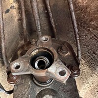 Ještě existuje malinká jiskřička naděje. Teoreticky se mohla povolit matice, jenž na hřídeli drží hrušku. To zjistíme jedině tak, že z auta opět sundáme kardan. Naštěstí je za poslední dva dny dole každý šroub perfektně rozhýbaný, takže tady zádrhel nečekáme. Povolování horních šroubů na kardanu je sice trochu komplikovanější, protože si s ním nemůžeme otočit, ale i tak si poradíme. Pak už jen povolit střední uložení a kardan padá dolů. Můj pohled míří okamžitě na konec hrušky a to, co vidím, značí jediné. Mičas je odpornej lucker. Matka držící hrušku se totiž válí vypadlá úplně mimo závit, což vysvětluje vše – od vibrací až po únik oleje. Teď jen zjistit, jestli gufero tuto anabázi přežilo nebo je po něm.