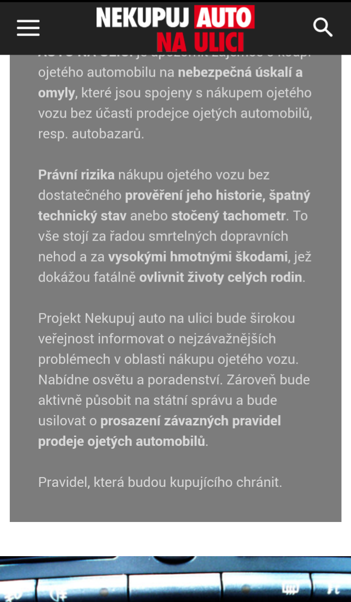 1. 9. 2017, 13:40Ty už automaticky píšeš poškozený. To je špatně. Píšeme o obchodu jako takovém, kde jsou rizika. Ne o špatném kde je kupující podveden. Takhle jak to popisuje Krab to chodí všude. Kupující je povinnen se seznámit se stavem vozu nakonec to podepisuje i ve smlouvě. Mnoho lidí neučiní ani základní kroky a už kupuje.