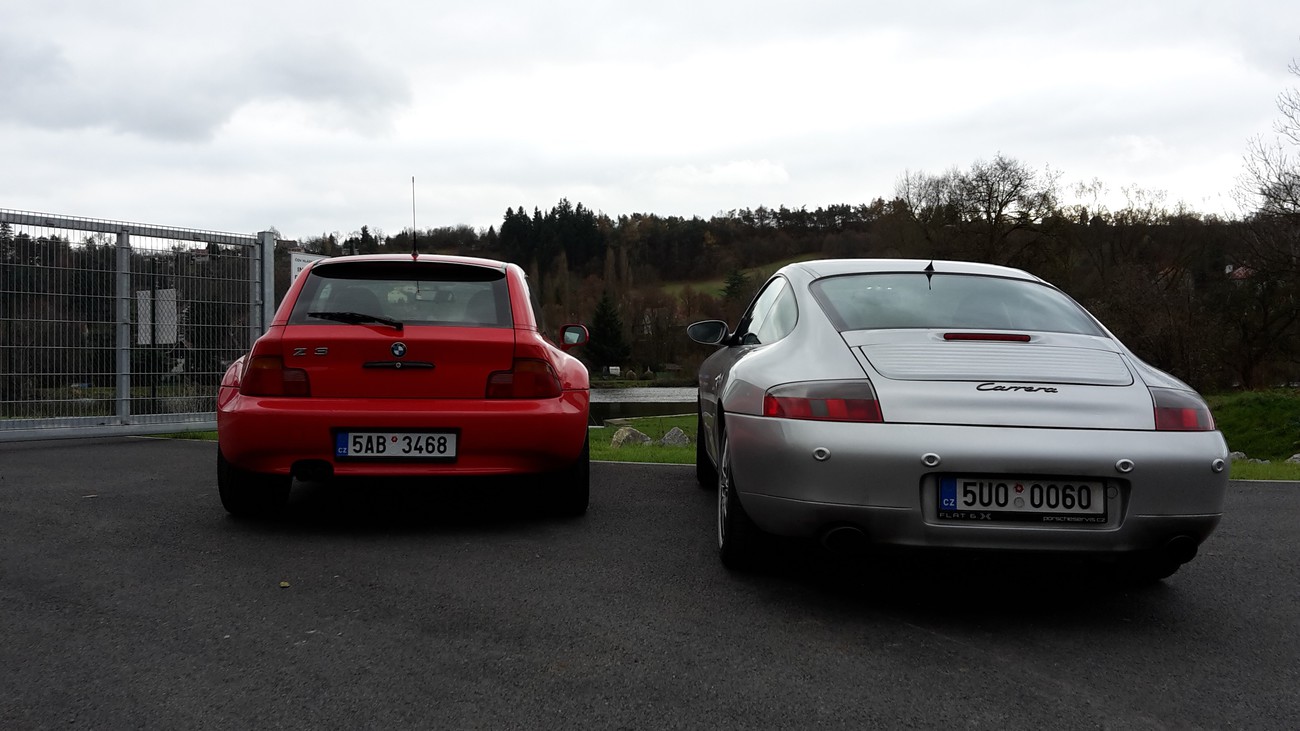 Přivítejte BMW Z3 Coupe 2.8 z roku 1998 a Porsche 911 996 z roku 2000 vážení.