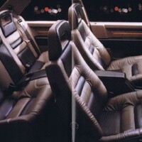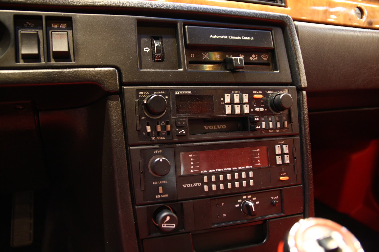 Musím se také zmínit o speciální červeném voze čalouněný červenou kůží… ano, osobní vůz pana ředitele Pehra G. Gyllenhammara. Byl vyroben v roce 1985, přesto mu již pod kapotou trůní B230FT, který se dostal do nabídky asi až pro rok 1989. Z něho je i snímek s palubním počítačem.