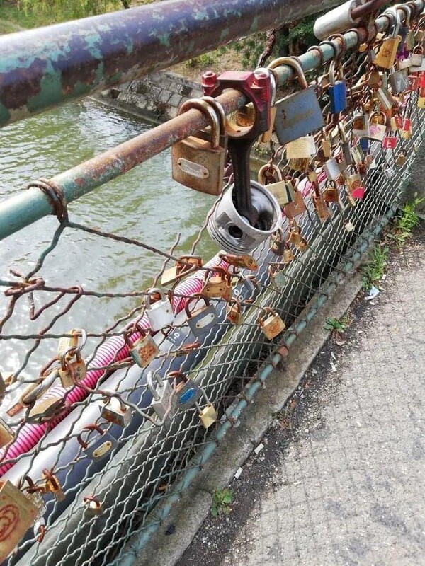 27. 8. 2019, 21:21Mě pobavil tenhle "zámek lásky". Asi majitel doufá, že mu jeho (evidentně druhý - kde by jinak vzal ten píst) motor s ním vydrží, dokud je smrt nerozdělí.