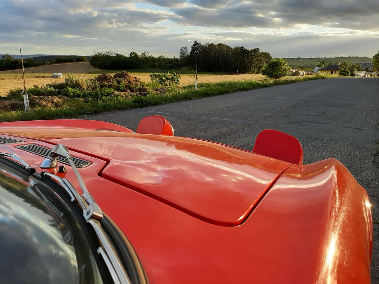 Dílna i depozitář muzea vypadají fantasticky a pod plachtami, kam jsem nakonec mohl nahlédnout se ukrývají poklady nad kterými fakt typicky jenom slintáme. Jednou bude to místo snad i veřejně k vidění, zatím nic prozrazovat nemůžu. Triumph byl krásný, přesně jak jsem si ho pamatoval z předchozích veteránských akcí a srazů. Zůstala k němu veškerá dokumentace, v které jsem si polistoval, sedl si dovnitř, nasál vůni a byl polapen. Zvuk řadového šestiválce je to, co vás k TR6 přiláká. Protože už prvních pár zatáček členité silničky ukryté kdesi v Jizerských horách ukazuje, že podvozek a řízení nejsou to proč byste Triumph TR6 měli chtít. Řízení je docela těžkopádné, podvozek tvrdý, ale stopu drží parádně. Řadit je potřeba trochu silou, ale hlavně na nic nespěchat a ozubená soukolí do sebe nechat v klidu zapadnout. Motor je klasický spoďák. Jede jako lokomotiva a krásně troubí šestiválcovým barytonem z nerezových koncovek. Triumph TR6 je takový silný pohodář. Upřímně řečeno, nebýt pro mne připravené na projížďku i to druhé auto, skončil by u mě v garáži. Vždyť já jsem Triumph TR6 odjakživa chtěl.