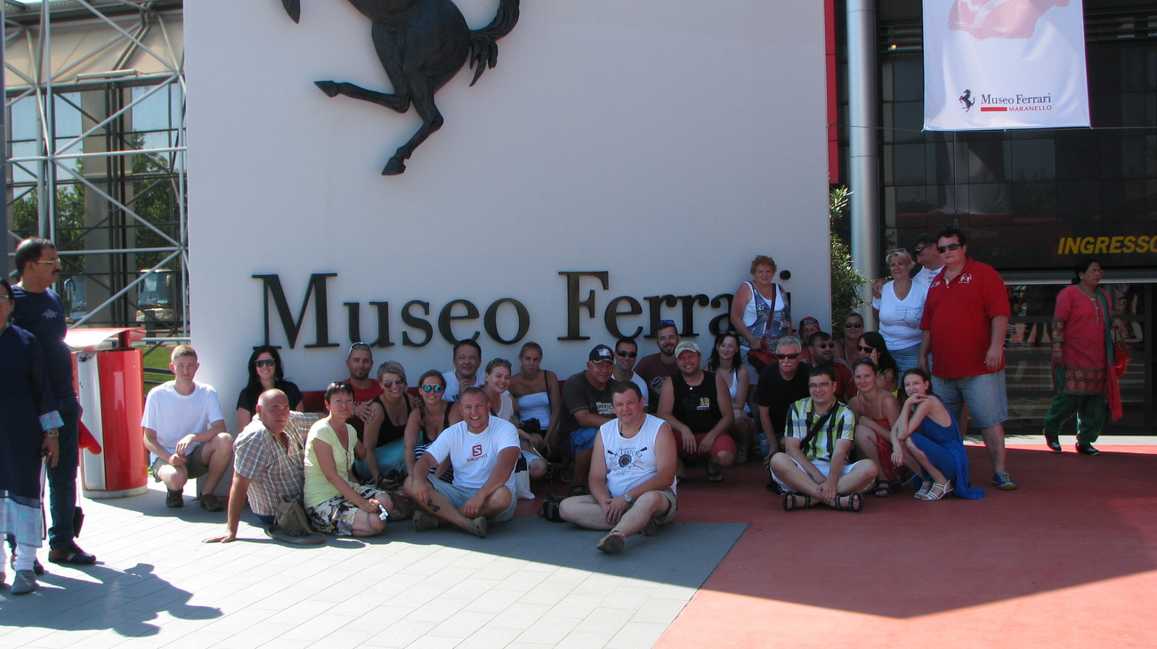 Odtud pochází i ta společná fotka celé party, a jak poznamenal jeden ze členů, když podával svůj foťák nějakému Italovi,: "hlavně aby tam byl ten kůň". Všem tekly slzy smíchy, ale fotku jsme dali. :-) Po Maranellu jsme s posádkou v Miatě vyrazili ještě do Modeny, do muzea Enza Ferrariho. Opravdu všem doporučuju. To místo má úžasnou atmosféru. Chytne to za srdce i toho, komu tahle italská automobilka zase tolik neříká. A i Modena samotná je krásné historické město, navíc bez davů turistů.