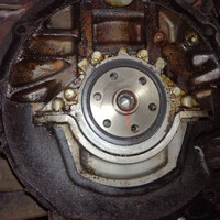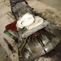 Čas jít zase pod auto a sundat tu převodovku. Podložit zespod, všecky šrouby ven, a nakonec s ní cuknout lehce dozadu, takto zněly odborné instrukce. No, ve 3 lidech se podařilo. Mně čekalo několika hodinové čištění převodovky benzinem, protože tam byl několika milimetrový nános. Dále spojka. Nevěřil bych, že ten setrvák může být tak těžkej, musel mít snad 20 kg (nadsázka). Mezitím jsem objednal správné gufero a jel si k jednomu členovi klubu pro nějaké další díly, on si aspoň změřil průměr setrváku, který potřebuje na svůj projekt.