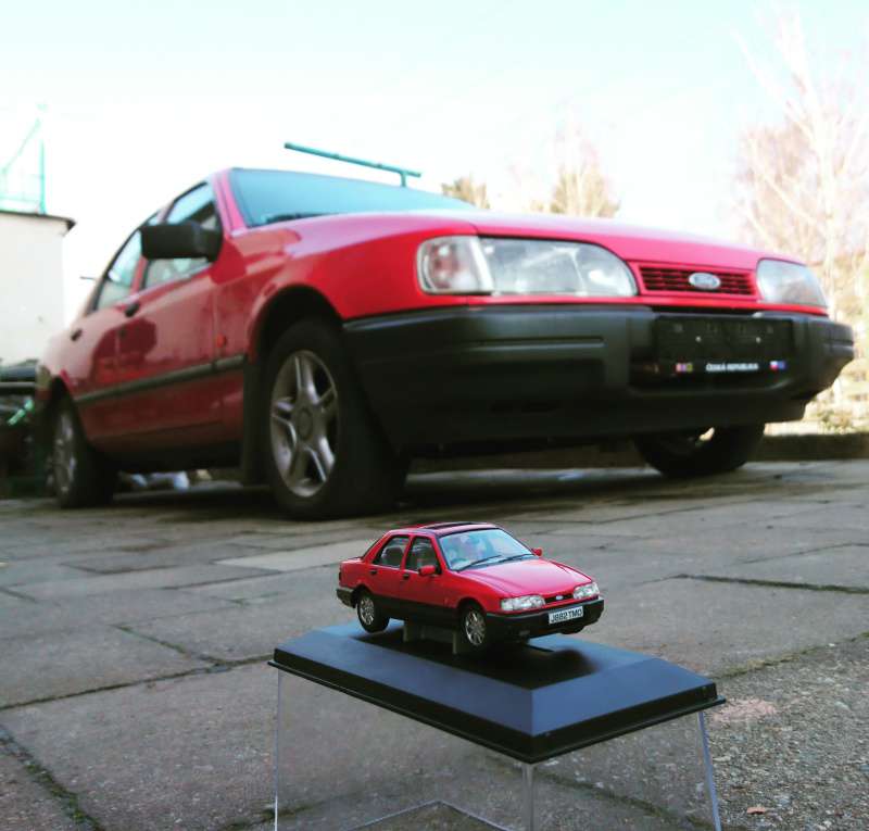 Dlouhou chvíli jsem si krátil návštěvami ebaye a dalších aukčních serverů, kde jsem sháněl díly na auto. Jedneho večera jsem však narazil na model červené Sierry. Neodolal jsem a kontaktoval kamaráda v Anglii, aby mi model koupil a při cestě do ČR mi jej předal. Nebudu komentovat hříšné peníze, které jsem za ni dal…