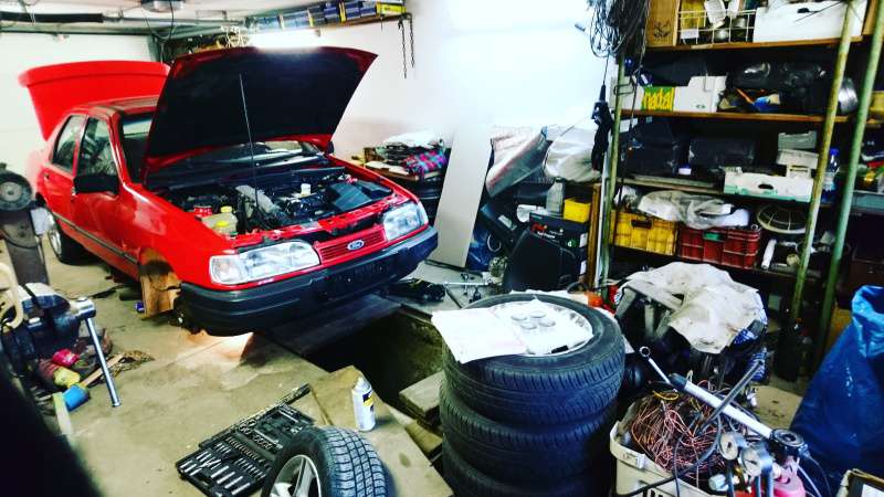Setrvák Zetec nebo RS2000.Ten je třetinovej oproti sierráckýmu.To je vážně hovado těžký.Div mě to tehdá nezabilo.Dnešní dvouhmoty jsou oproti tomu prd...Převodovka pásne ze sierry.Fordí čtyřválcový benzíny na sebe v poho MT75 napasujou.Nechal bych spojku vypínanou lankem, scorpio má hydrauliku...Diferák z 2.0 scorpia, je krátkej a brzdy z Mondea MKI/ MKII V6....je to čtyřdíra, scorpio MKI mělo pětidíru a klaun sice už 4x108 jak sierra, ale sežeň Coswortha dneska.Těch V6 Durateců na rozpárání ještě pár je.Nejlíp kombík, mělo to i chlazenej zadek...
