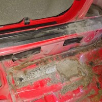 Ze setrvačnosti jsem sundal panely dveří, plastové podběhy (kde jsem tu hrůzu viděl i z venku), těsnící gumy, zástěrky a podobné drobnosti. Bál jsem se, že toto bude neopravitelné nebo se nedoplatím (v krajní nouzi byla možnost i výměny karoserie).