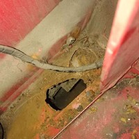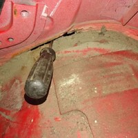 Mně čekalo komplet vyndání interiéru, podběhů, všech těsnících gum atd. Ještě stále jsem si nebyl vědom veškeré rzi, která už tak byla na můj vkus až-až. První byl na řadě interiér. Pod zadníma sedačkama jsem našel několik desítek zlotých a různý bordel. Dále jsem pak musel vyndat celé čalounění kufru, která se skládalo z několika koberců. Potom následovaly řidičovy sedačky. Zde už bylo pár problémů. Zarezlé šrouby, chybějící podlaha a podobné radosti. Sedačky se podařilo vyndat, když se pár šroubů podařilo zneškodnit flexou. To nejhorší mě však mělo teprve potkat – pohled pod koberec. Sundalo se pár plastů včetně krytu tunelu. Lehce jsem bojoval se spodkem palubovky, který nakonec musel taky pryč. Pak už koberec a takový tlumící materiál podobný skelné vatě nalepené na asfaltovém pásu.