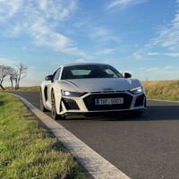 To, že mě baví dokazuje i 6 tisíc kilometrů za první tři měsíce od nákupu – tohle žádná garage queen nebude. Na okreskách s dobrým povrchem je "erosma" nepřekonatelná a zvuk desetiválce je mezi 4 a 8,5 tisíci otáček dechberoucí. Facelift a emisní normy sice něco ze zvuku ubraly, ale pořád z otevřených klapek výfuku nad 4 tisíci otáček zní symfonie desetiválce a při podřazení ve výfuku zaburácí umírněné pops&crackles. Na okreskách se rychlost nebezpečně přibližuje dvojce a na dobrém kusu delší dálnice není problém, aby ukazatel rychlosti začínal trojkou – maximální rychlost 320 km/h zde není žádná nedosažitelná meta. Díky motoru uprostřed je auto taková velká motokára, která se pevně drží silnice tak, že jakákoliv zatáčka na okresce lze projet stovkou a zůstanete přitom ve svém pruhu. Schopnosti auta daleko převyšují moje schopnosti řidiče, nemám problém si to přiznat, nicméně konečně chápu to motorkářské přísloví "jezdit co mozek pustí". Tam kde nebyl u mustangu problém vyjet z křižovatky bokem (kde to stabilizace po chvilce vzdala se slovy "whatever dude, kill yourself, idc" tam je schopná nad Vámi bdící stabilizace, naladěná vývojáři z Neckarsulmu, auto skoro zastavit. R8 se dá použít pro denní ježdění, přesto si užijete vždy až tu druhou jízdu – až když přesně víte, kde jsou po cestě rozmístěny propadlé kanály a kde jsou mostní či jiné spáry. Přesto už chápu majitele "pravých" supersportů a bolest z českých cest, příčných prahů a děr. Spotřeba se pohybuje mezi 10,5 při defensivní jízdě po okreskách až po 25 litrů když spěcháte. Já mám průměr za 6000 kilometrů nějakých 18,3/100 km – při osmdesátilitrové nádrži to i tak slibuje solidní dojezd.