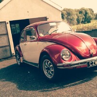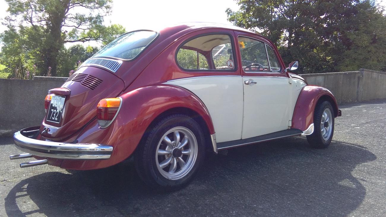 A jak ze se s broukem jezdi v kazdodennim provozu? Budete prekvapeni ale uplne lehce jako napriklad se zminovanou mazdou mx5. Pravda toho vykonu tam moc neni,ale za to ma kroutak dosti nizko,takze nemusite motor vytacet. Vzhledem k nizke vaze nebudete brzda provozu,rizeni jde z lehka a jen pri parkovani mozna pocitite absenci posilovace rizeni,ale pokud mate svalstvo na urovni aspon deseti leteho ditete,neni co resit. Spotreba,no tu netusim,kdyz dojde na rezervu proste vemu plnou,ale rekneme ze prumerne neco kolem 10 litru. Spolehlivost? Nemci vedeli co delaji, nic jednodussiho a spolehlivejsiho jste si koupit nemohli. Spoustu veci si udelate sami, a pokud na to nejste,jsem si jist ze vas mechanik bude delat na broukovi s radosti. Dily jsou take za hubicku. Za nejakych 8 mesicu a cca 6 tis km me brouk nikde nenechal. Bezpecnost? Nic horsiho jste si koupit nemohli,pasivni bezpecnost prakticky nulova. Mam to stesti ze jeden z mych zakazniku vlastni VW salon poslednich skoro 50 let,a tvrdi ze v te dobe to bylo velmi bezpecne auto poplatne te dobe. Nevim jak to jde dohromady s nadrzi plnou benzinu v predni kapote ale predstava havarky opravdu neni lakava. Prakticnost? Dobra,uveze 4 lidi (Z toho tri mirne s nadvahou) uplne v pohode,nechtelo se mi verit. Iphone si sice nikam neodlozite,za to za zadni sedacky nalozite dva pytle s bramborama a nakup v pohode. Jizdni vlastnosti? Jeho revirem je mesto… Prekvapive dobre,pri brouzdani internetem jsem cetl pribehy o tom jak ten ci onen dostal smyk na krizovatce ci kruhaci az jsem se bal si auto vyzvednout po vlastni ose. Pravda je takova,ze pokud dodrzujete rychlost nemate sanci brouka utrhnout,coz jsem i zkousel zamerne,ale bud to neumim ci auto nema dostatek vykonu ale do uzkych se mi ho jeste dostat nepovedlo.A to prosim i pri mokre vozovce kterou si tu v Irsku uziju vic nez dost. 112km/h dle gps vubec neni spatne na 40 let stareho brouka,ale je vice mene mozne ze po vice jak dvou hodinach jizdy budete potrebovat brufen. Bubnove brzdy vzadu,kotouce vepredu,dokazi zastavit brouka pomerne slusne. “Cool” faktor? Vysoky,pokud jste slyseli nekdy broukare vypravet o tom jak ho lidi zdravi a zastavujou aby mu rekli ze ma cool vozidlo a mysleli si jak prehani,verte ze to je pravda. Ani s jaguarem xjc jsem nepoutal tolik pozornosti.