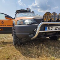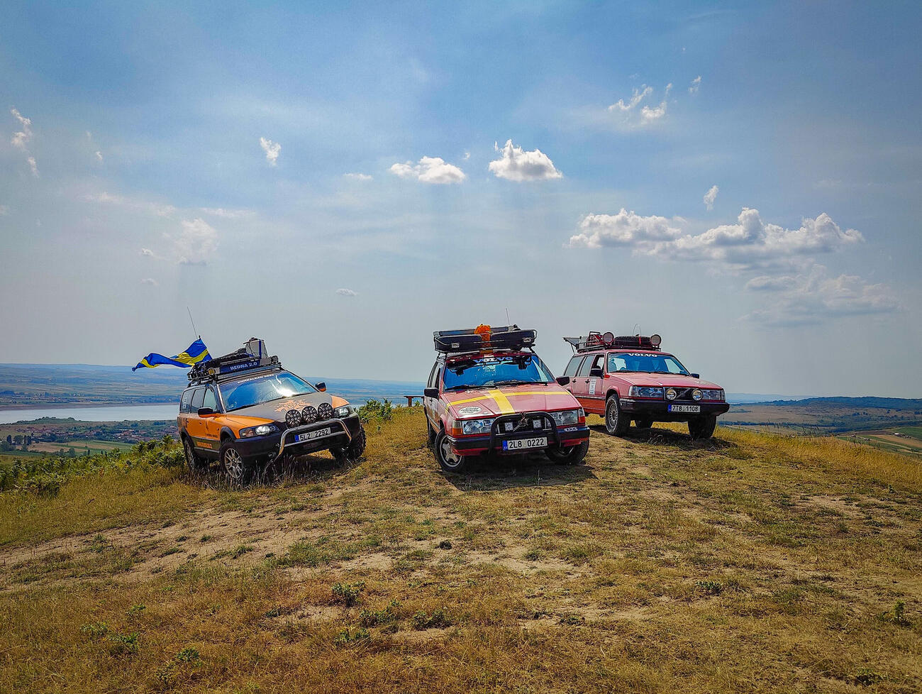 Do Oradei dorážíme okolo půl třetí, rychle plníme místní úkol a znovu sedáme do strojů, protože nás čeká první Rumunský kontrolní bod umístěný mimo zpevněnou komunikaci. Slibuje prý krásnou vyhlídku a cesta k němu nám nezabere ani hodinu. Vyhlídka znamená jediné – jízdu do kopce. Proplétáme se něčím, co vzdáleně připomíná zahrádkářskou kolonii, aby jsme se v zápětí zjevili na planinách nad městem Aleșd. Poslední úsek k vyhlídce nabízí hned dvě možnosti příjezdu. Jedna je delší, kdy je třeba objet celý vrchol kopce a nahoru se dostat po mírnějším stoupání. Druhá pak výrazně kratší a o to strmější. Pro Bednu je volba jasná a jdeme téměř okamžitě na věc. Vzhledem k funkčnímu AWD beru začátek pěkně s rozvahou a na plyn šlapu pořádně až přímo v kopci… bohužel na horním horizontu následuje školácká chyba. Prohlubeň těsně za hranou vrcholu v kombinaci s neubráním plynu při jeho přejezdu katapultuje přední kola vysoko do vzduchu a následuje velmi tvrdý dopad přímo na hřbet terénní nerovnosti středem šusplechu. Tohle není dobré, běží mi okamžitě hlavou. Popojíždím ještě kousek dál po plošině, varuju ostatní přes vysílačku a pomalu se sápu z auta. Naštěstí se černé myšlenky na díru v chladiči nepotvrdily a jediná věc, co za moji blbost právě zaplatila, je pravá mlhovka. Sušplech to sice ustál, ale změna jeho tvaru ve střední části jasně ukazuje, že tento dopad byl opravdu hodně přes čáru. Při sbírání střepů, teď již neexistujícího skla mlhového světlometu mé XC70, si v duchu nadávám do idiotů. Za blbost se prostě platí.
