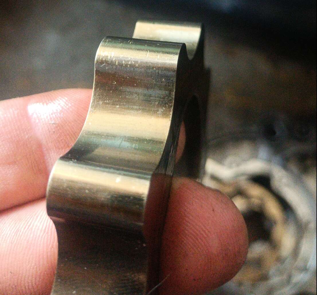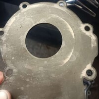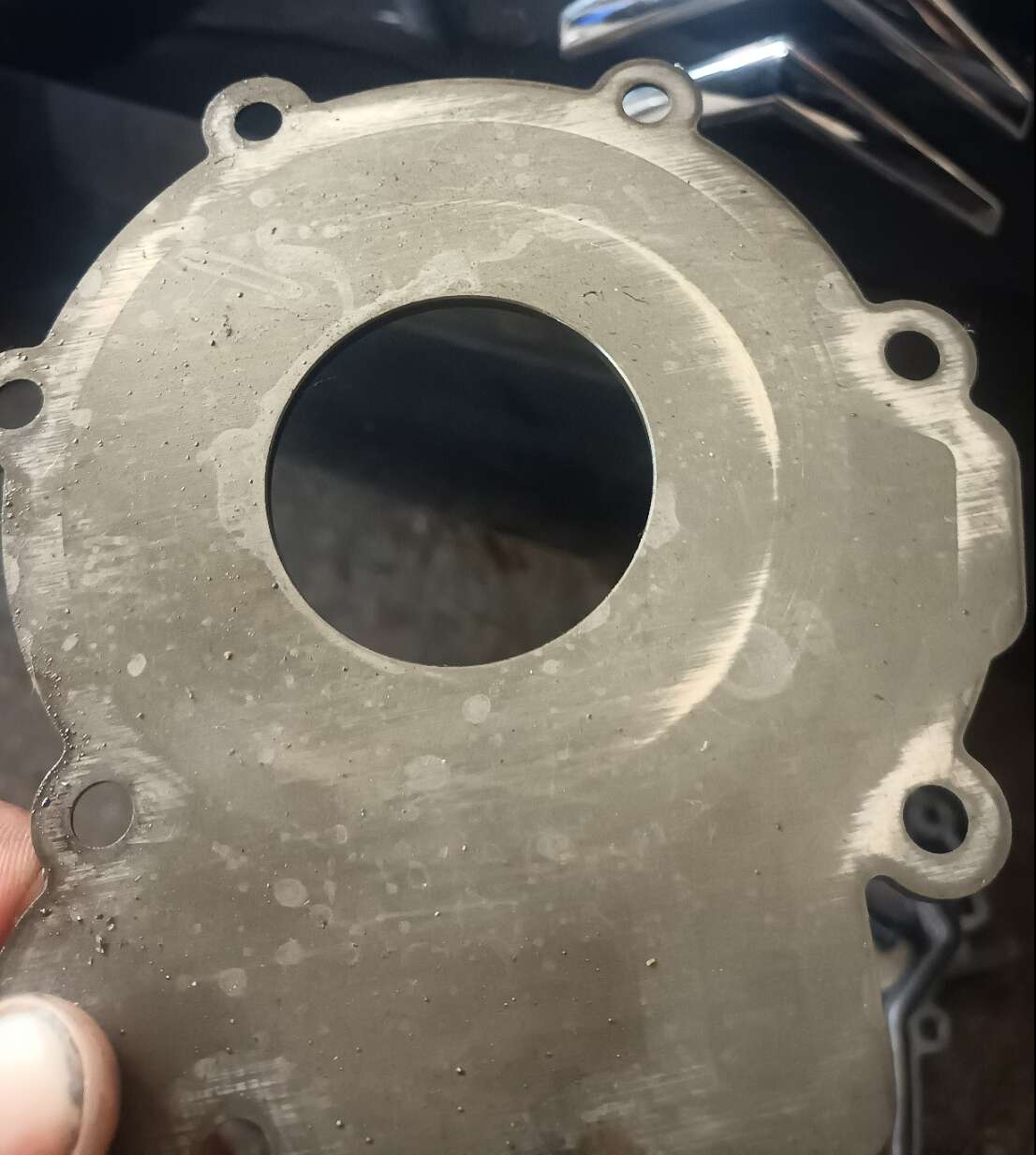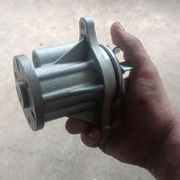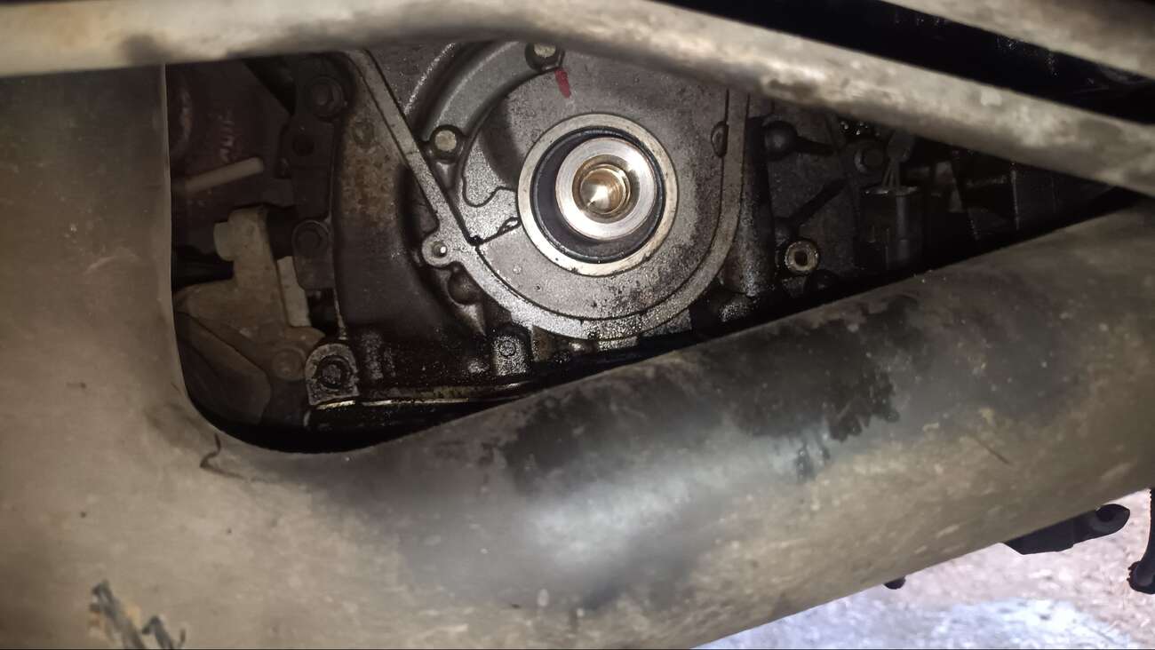 Pokračujem. Upravený přípravek vrazím do díry, povolím centrální matku na spodní řemenici. Shodím držák motoru, označím si a shodím rozvody, sundám šroub… No a ti pitomci nedají ani klínek do drážky na spodní řemenici na kliku. To už by mě fakt trefilo. Aspoň kónus… Ne, ani ten. Prostě je to jen dorvaný na kokota. Až po rozebrání jsem to zjistil a hledal utahovací moment. 300Nm + 90°. Fakt skvělý. Takhle kravskej moment jen tak něčím nevymyslím, standardně mám momenťák do 200 Nm. No nic, shodím pumpu. Standardně musí dolů i ten mezikus mezi blokem a vanou. Jenže vzhledem k tomu, jakej je vojeb shodit výfuk, zkusím to trochu očurat. Naštěstí se povedlo. Stará pumpa byla nejspíš ještě originál. Zkusil jsem ji rozebrat, abych zhodnotil stav. Začínala mít na náběžných hranách již “vrypy", jinak stav byl ucházející. ALE, už byl znát pokles tlaku při měření před zásahem (minimum při 80°C mělo být 1.2bar při volnoběhu (a pak různé tlaky při otáčkách, ale teď jde o představu), a tato pumpa již tlačila při 80°C jen 1.1 bar. Což se nezdá jako velký problém, ale dlouhodobě to prostě problém je a ty motory na to odcházejí. U Land Roverů a Jagů při špatném způsobu jízdy to posralo motor při 50 – 70 tisících kilometrů u nových aut. Tady to zatím vydrželo 300 tisíc, tak má asi nárok.