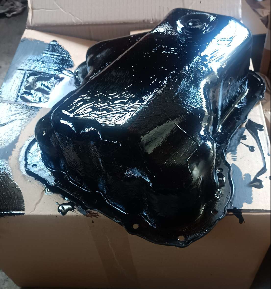 No, přemýšlím, co s vanou udělám. Konstruktéři fištrónský totiž přestali dávat výpušťák na zadní stranu co nejníže vany, jak bylo zvykem, ale dali výpušťák do dna. Ale aby se neurazil, zapustili ho. Ovšem uvnitř vany to pak dělá takovou vaničku s nevypustitelným cca půllitrem oleje. Člověk nechápe, kde se tohle v konstruktérských palicích vzalo. Asi ještê dejme tomu u 3.0, kde je cca 9 litrů motoráku, ale co třeba 1.6HDi, které měly 3.5 litru oleje náplň a ten půllitr tam zůstal… Taky na to hromada těch 1,6 dojela (nebyl to jediný důvod, ale dost k tomu přispíval). Vanu, vzhledem k tomu, že je plechová, jsem se rozhodl také trochu zušlechtit, protože pod rozvody se jí evidentně zalíbily zrzky a jala se obarvit z černé na korozi. Skvělá vizitka. Tak obrousit, základ, plnič, 3 vrstvy UBS.