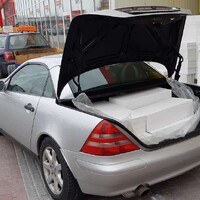 Musím říct, že v tu chvílí jsem svoje SLK skoro až neměl rád. Potrápilo mě hodně, ale pak jsem se za ním zas otočil, když jsem zamykal a odcházel. Viděl jsem ten jeho veselý výraz malého rošťáka a prostě nedá se jinak. Já to auto miluju. Kůži na stropě jsem hned druhý den strhnul celou, dolil trochu chladící kapaliny, po měsíci nechal naplnit klimatizaci a s čalouníkem vyřešil i potah střechy. A zas je veselo.