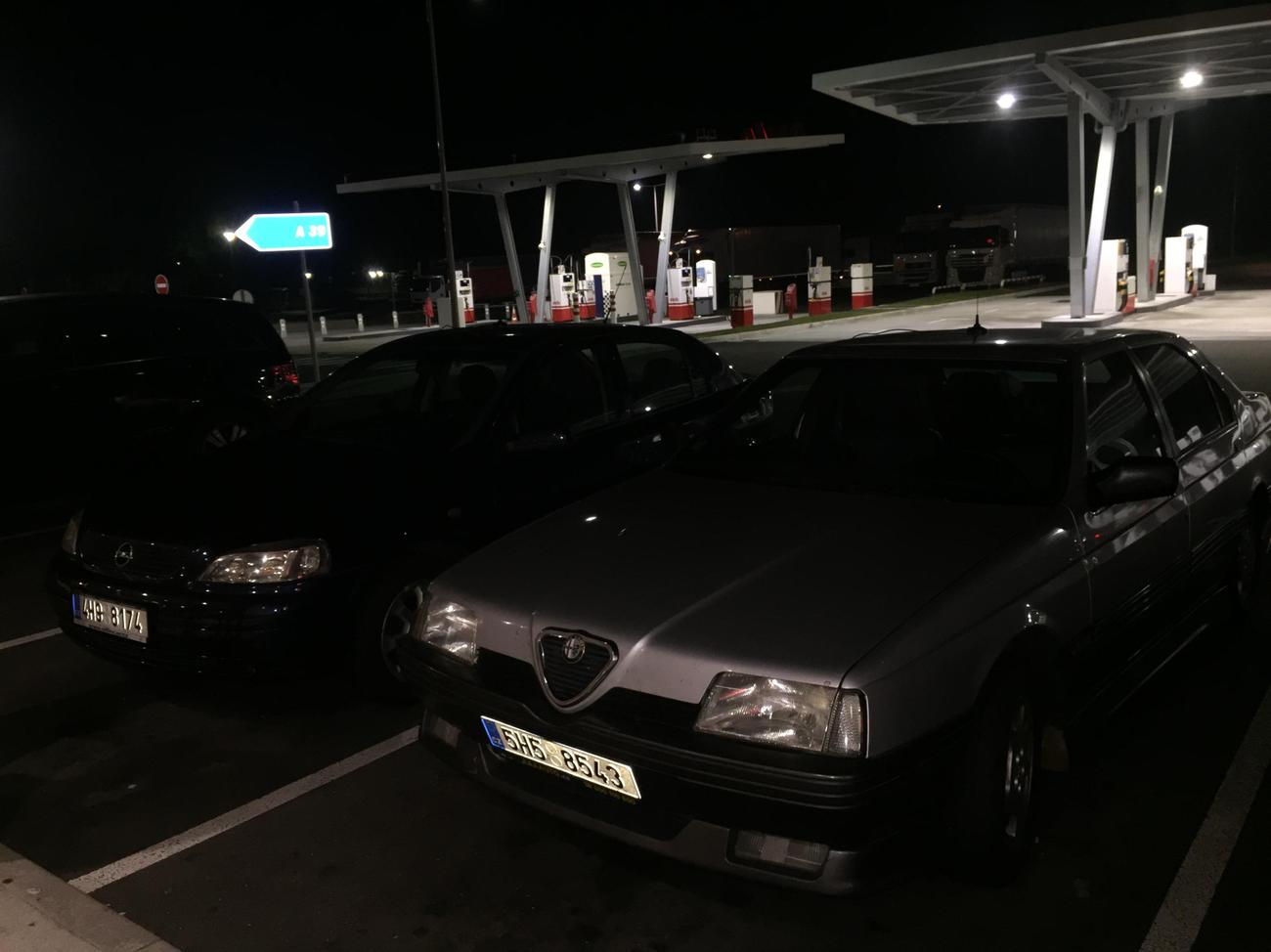 Německem jsme profrčeli celkem rychle a 164 ukázala, že si s rychlostmi nad 200km/h stále dobře rozumí. Proběhla pouze řízková a olejová pauza, až někde před hranicemi Francie bylo hladovým okem rozhodnuto o dalším tankování. Chtě nechtě jsme museli vzít jejich E15, protože biosračky míchaj už úplně do všeho a ani prémiové dražší palivo nic nezaručuje.