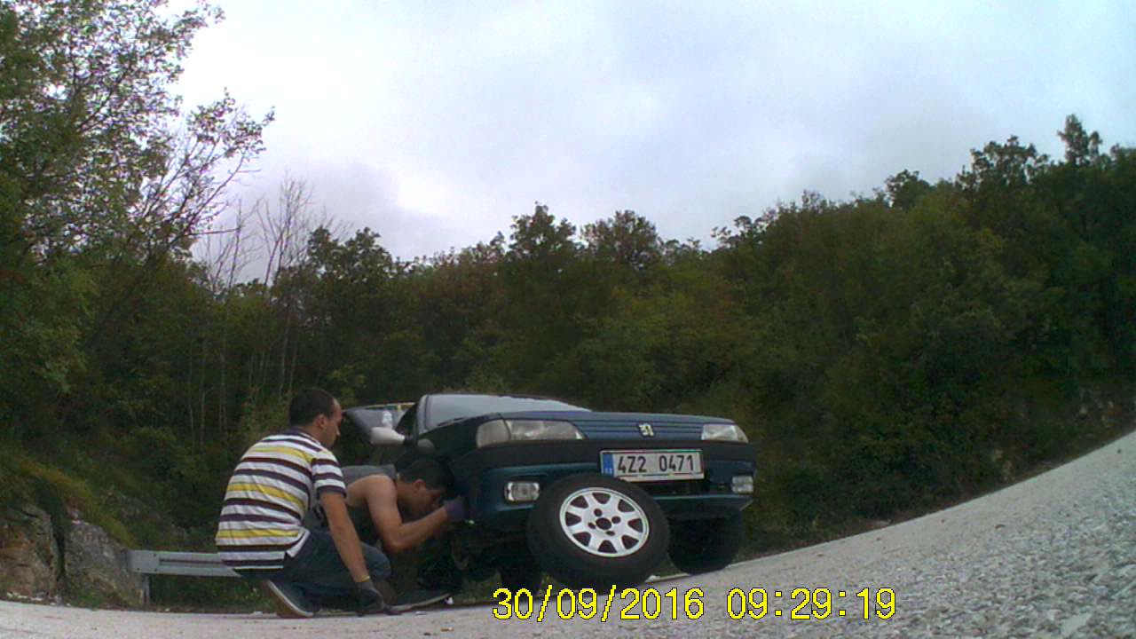 V Břeclavi tankujeme 47 litrů do 45 litrové nádrže. Nechápeme, ale jedeme. Slovensko až na místní okresky ujde. Vjíždíme do Maďarska. Máme za sebou asi 300 km a problémy na sebe nenechaly dlouho čekat. Slovenské okresky si vybraly svou daň a pravá poloosa při každém zatočení lupe, jako když se láme železo. Několik aut na nás bliká, a když i traktorista něco gestikuluje, zastavujeme. Kontrolujeme auto, ale nic divného nenajdeme… tak jedeme dál. Lupání se prudce zhoršuje a my stojíme před rozhodnutím, zdali pokračovat nebo se potupně vrátit domů. Odtahovat pokažené auto v zahraničí není žádná sranda. Nejsme ale žádný srábotky, tak jedeme dál. Když se auto pokazí tak ho tam prostě necháme, ukopneme espézetky, přerazíme číslo a pojedeme domů stopem. Po kratším bloudění v Maďarsku a těsném vyhnutí se čelní strážce s kamionem, který si nás při předjíždění nevšiml, se sen stává skutečností – dojíždíme k hranicím, k Chorvatským hranicím. Mám na hlavě pirátský šátek a Honza zase čepici s červenou bambulkou. Oba máme naše „expediční pokrývky hlavy“ – máme fakt styl. Nevím, co si o nás mysleli, ale pustili nás dál.