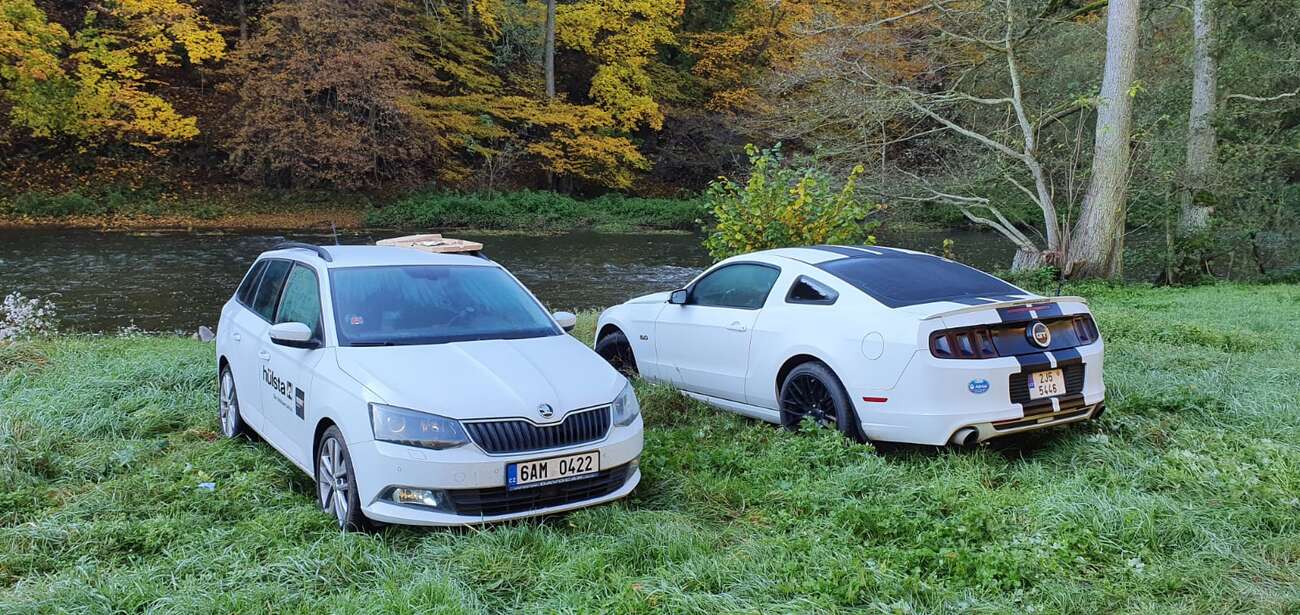 Ráno jsme se celý rozbolavělí vysunuli z Fábie, kvůli Covidu jsme si totiž nemohli nic pronajmout, a přichystali se k celodennímu projíždění po silnicích Moravského Krasu. Prvním velice příjemným prvkem jinak vlhkého rána u řeky byl studený start ‘vé osmičky’, což přilákalo celou zahrádkářskou kolonii, která navíc netušila, že situace bude ještě napínavější. Čekal nás totiž výjezd z překvapivě promočené trávy s hlínou na vlhkou cestu. Jak Mustangu, s pomocí notného řevu, tak ani Fábii, se vůbec nechtělo, naštěstí jsem ale vše sám zvládl a svým mladickým pražským přízvukem jsem nikoho prosit nemusel. Odnesl to pouze blatník Mustangu, stylově ohozený bahnem.
