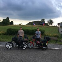 Bylo to tak, že jsem se potřeboval dostat do města, ale protože mělo pršet a já nechtěl riskovat další pád z motorky, byl jsem donucen použít dopravní prostředek nejhorší, vlastní nohy. Když jsem si to rajzoval okolo jedné restaurace, parkovaly před ní dva mopedy ověšené bagáží. To mě zaujalo, a proto jsem později vážené pány cestovatele kontaktoval, abych je mohl pomocí internetů ohledně jejich cesty vyzpovídat. A protože si budete číst o roadtripu, měli byste si k tomu pustit vhodnou písničku. ( 1 , 2 , 3 , 4 , 5 )