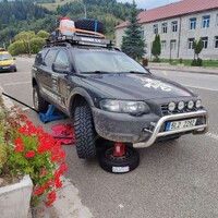Než se nadějeme, jsme dole v údolí a stojíme kousek od centra obce Carlibaba s XC na dvou heverech. Dole pod autem zjišťuji velmi rychle pravého pachatele našich problémů s AWD. Ona totiž původně podezřívaná úhlovka je naprosto v pořádku. To stejné se však nedá říct o kardanu, respektive o jeho středním uložení a zadním homokinetickém kloubu ze kterého zmizela většina ložiskových kuliček. Některé z nich se ani neobtěžovaly nějakým broušením, ale svůj výrobcem vymezený prostor opustily přímo, zanechávajíc za sebou efektní otvor v obalu klobu. Střední uložení pak v podstatě zmizelo úplně a kardan tak naprosto volně naráží do všeho okolo. Pokud má tenhle stroj pokračovat v cestě, musí bezpodmínečně ven a to není jen tak. Podvozek kryje z větší části několik desítek kilo vážící šusplech doplněný docela slušnou vrstvou zaschlého bahna, které jeho váhu ještě zvyšuje. Sloupový zvedák by byl ideální, ale jak rychlá kontrola ukazuje, v okolí není jediný… Respektive v okolí jsou asi tři, ale nikomu v servisech už se nechce dnes dělat a na zvedák mě ani za úplatu nepustí. Počet možností se aktuálně docela zúžil. XC v tomto stavu daleko nedojede, takže buď budu na místě čekat do zítra odpoledne na nejbližší termín v servisu, nebo dostanu kardan z auta sám. Nechceme zdržovat ostatní, takže se loučíme a posíláme kolonu ať jedou dál bez nás. To však zbytek skupiny nepřijímá s tím, že my jsme ve štychu taky nikoho nenechali, takže nám pomůžou s nočním servisem. Jsem docela rád, protože na akci, která nás dnes v noci čeká bude každá ruka dobrá.