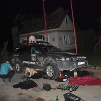 Teď už to všechno jen složit dohromady. Zpět výfuk, šusplech a kardan přivázat k zahrádce na střeše. Už nás nikdo ani na první pohled z AWD pohonu podezírat fakt nemůže. Je těsně před půlnocí, dáváme pár vítězných panáků i s posádkou Jurského parku, který za námi dorazil v mezičase a jdeme spát. Dnes jsme opět mimo plán, ale na druhou stranu stále ve hře a to se počítá. Zítra si budeme muset fakt pohnout. Jinak se do pátečního večera do Banátu nedostaneme.