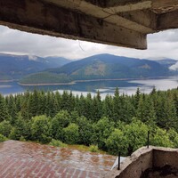 Dostáváme se do velké místnosti stále ještě obsahující objemné nádoby na pitnou vodu a zázemí, které bylo pravděpodobně plánováno jako strojovna výtahů. Paradoxně právě toto technické patro disponuje oním největším balkonem v celé hotelovém komplexu. Kocháme se na okamžik tím nádherným výhledem na údolí přehrady. No nic, ještě pár fotek a musíme mizet. Neplánovaná bojovka s nejvyšším patrem bez schodiště nám přece jen vzala už docela dost času. Vycházíme zpět na střechu a zjišťujeme, že začíná pršet, což adhezi plechovo asfaltové střešní krytiny moc nepřidá a po hromosvodu se tak nikomu dolů úplně nechce. Na druhé straně hřebene jsou vidět balkóny, do kterých se dá vcelku bezproblémů skočit přímo ze střechy. Zní to jako skvělý plán, ovšem jen do okamžiku, než stojíme v jednom z pokojů navazujícím na vybraný balkón. Příběh předchozích dvaceti minut se opakuje a my už chápeme, proč jsme při prohledávání patra pod námi tyto prostory neobjevili. Důvod se nazývá mezonet, tím totiž měly pokoje s nadstandardně vysokým stropem být a k tomu, aby jím opravdu byly, chybí jediná věc… Ano, hádáte naprosto správně, jsou to jak jinak než schody. Koukáme do díry v podlaze končící asi tři a půl metru pod námi, povrchem kompletně pokrytým střepy. V páskových pantoflích si na tento skok opravdu netroufám a tak se opět vracím na vrchol střechy zkusit svoje štěstí na hromosvodu. Tentokrát již jde vše jako po másle a krom toho, že jsme lehce zmoklí, sedáme po nějaké chvilce opět do aut. Neplánovaný průzkum střechy nás stál něco přes hodinu času, takže se vzdáváme tělocvičny a vyrážíme směr město Vulcan, kde nás čeká náš dnešní druhý a zároveň nejspíše také poslední (pokud nepočítám cíl) kontrolní bod.