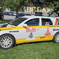 Konečně sobota, jdeme do naších úborů a vyrážíme. Natěšení, plní očekávání a zvědavosti co nás čeká. Jsme odhodlání projet všechny připravené kontrolní body a užít si to i s nějakými výlety mimo asfaltové cesty. Jsme tři a posádku máme rozdělenou skoro jak na Dakar. Fero je první řidič a mechanik. Kryštof druhý řidič (většinou ranní J) a internetový vyhledávač (google), pomocný mechanik, já navigátor catering a pokladník. Cestou potkáváme další posádky, brzo všem co jedou Gumbalkán začínáme říkat „Gumídci“. Zdravíme se blikáním, máváním a dostáváme se díky tomu do té správné nálady. Blížíme se na start v Bílé. Trochu nás znervózňuje, že někteří již jedou proti nám, asi nechtěli čekat. My na startu chceme být, nasát atmosféru, podívat se kdo vše jede a co kdo vymyslel. Navíc za námi mají dojet kamarádí a podpořit nás na startu. Jsme z toho, co vidíme na startu nadšení. Neskutečná atmosféra a hlavně hledíme na ty kreace jak aut, tak i převlečků. Fakt paráda co dokážou lidé vymyslet a i udělat. Doporučuji se tam zajet podívat. Projdeme parkoviště snad dvakrát dokola, fotíme, pokecáme s lidmi a už se nemůžeme dočkat startu. Ten přichází po 11 hodině.