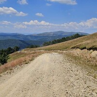 Fero má nervy, zda to naše kára zvládne. Ty se ještě zvětšují s tím, jak se profil cesty blíží čelnímu sklu a jak vidí, že to některé posádky vzdávají. Dává raději své káře i sobě chvíli odpočinku. Po ní se s vervou pouští dál až na vrchol, který zdoláváme. Možná i díky tomu, že místo 55 kW máme vylepšený motor na 66 kW. Kontrolní bod je v sedle Pasul Vulcan, místo s krásnými výhledy. S námi je zde spousta dalších posádek, blížíme se cíli, tak je to nasnadě. Fero žádá oddych jak pro sebe tak i pro svou káru. Oba si ho zaslouží, dáváme oslavné pivo a kocháme se výhledy. Dál můžeme pokračovat buď dolu lesní cestou, která je za začátku hodně kamenitá, nebo se vrátit po asfaltu dolů a objet to. Ferovo sebevědomí posilněné zvládnutým výjezdem a následným pivem rozhodlo, že to dáváme dál po lesní cestě. A já s Kryštofem jsme rádi, budou zážitky. Z počátku jedeme opravdu opatrně, šutry jsou velké.