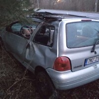 Auto se na první pohled může jevit celkem nepoškozeně, ale pohled druhý odhalí prolomenou střechu z toho kotrmelce, hnutý B-sloupek, porozbíjená okna včetně čelního, a třetí pravděpodobně celou zkroucenou kastli, protože zadní dveře, byť nehodou poškozené minimálně, se nedají vůbec otevřít. Měl jsem asi kliku, že jsem se křečovitě držel volantu, tím pádem mi nelítaly ruce po autě, a nedošlo ke skřípnutí některé končetiny pod autem v převalovací fázi..jo, a pytle zůstaly pod kryty, nevyletěl ani jeden, a to mělo auto čtyři...kdosi mi vysvětloval, jak je to možné, ale....i bez toho jsem tu, relativně zdravý, takže neřeším.