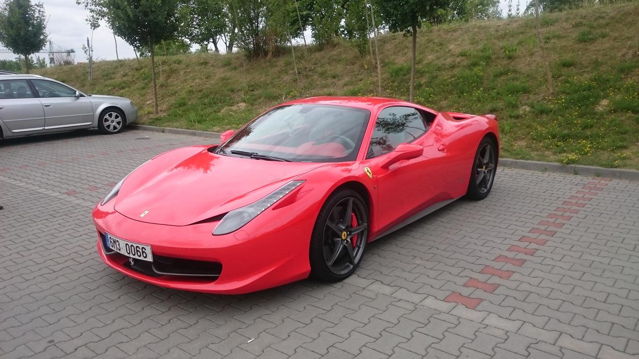 Bylo nebylo, jednoho dne jsem ke svému svátku dostal od rodiny společný dárek – poukaz na zážitkovou jízdu ve supersportu. Pro každého automagora je takový voucher moc krásná věc, která udělá radost, takže jsem i já měl radost. Tudíž se dnešního rána stalo, že jsem vstával dříve než obvykle, abych dorazil správně na čas na smluvené místo, kde jsem měl dostaveníčko s Ferrarri 458 Italia. Podmínky byly naprosto ideální – suché cesty, oblačno, takže žádné riziko oslnění od Slunce, teplota, ze které má každý motor největší radost – pěkně někde okolo 15-20 stupňů. Po chvilce čekání navíc přijel tento krásný rudý vůz s koníkem ve znaku již pěkně zahřátý od projížďky s předchozím šťastlivcem, ani něžné zahřívání motoru nebude tedy nutné. Navigátor/instruktor je zcela vkliku chlapík, takže už jen nastavit sedačku a zrcátka, rychlá instruktáž k ovládacím prvkům, a můžeme vyrazit!