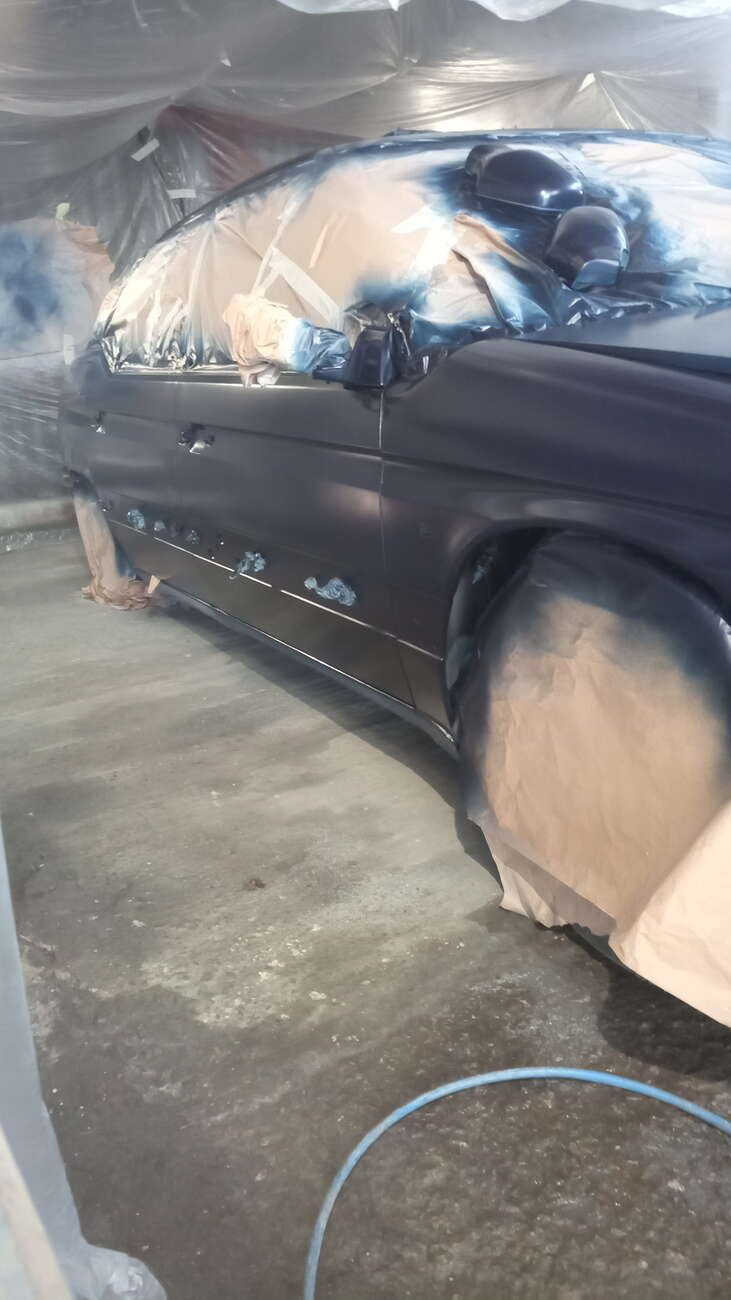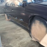 Letos jsem se ale kousnul do zadku a že už to konečně dotáhnu… Začal jsem brousit (aspoň dobře vyzrálý) plnič. No, bylo vidět, že se mu moc nechtělo, byl asi přezrálý, ale aspoň nebyly tolik probrusy. Věděl jsem, že mě pak čeká ještě vyřešit klima a ruční brzda, ale to jsem si chtěl nechat “na konec". Plnič vybroušen (chvála bohu za excentrickou brusku, tohle brousit 800 a 1000 šmirglem pod vodou, tak se zblázním), postavil jsem si provizorní box. Měl jsem v plánu ale proti Holanďanovi udělat trochu změnu, ulehčit si práci a doufat, že se povede dobře sjednotit odstín a nechal jsem na autě zadní vrata, kapotu, vśechny dveře a blatníky. Odstín je sice dobrej, ale do prd.le, jak jsem si to nepoložil, objevilo se tam pár stékanců bezbarvého laku… No co, vím pro příště, nechám na tom ruce při leštění. S lakem nejsem moc spokojený, šlo by to na 100% udělat lépe… Zas si říkám, že na to, že nelakuju často a jak to vypadalo před tím…