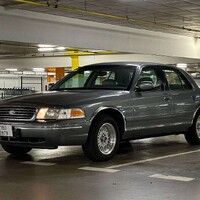 Jinak trochu seriózněji: je to Ford Crown Victoria LX, rok 98, původem z Floridy, se vzduchem na zadní nápravě, patrně bez HPP (Handling & Performance Package), bez LSD, s dvojitými výfuky. Jo a taky s kódovým zámkem dveří.