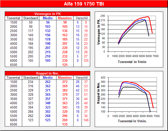 16. 2. 2021, 09:49Popravdě nevím, kdo by ty úpravy dělal no. Navíc další věc je ta, že novější motory v Giuliettách jsou vlastně úplně jiné, mají i hliníkový blok narozdíl od litinového u těch starších atd. Když se člověk koukne na grafy, tak prostě ten motor ve 159 je bída a přidat mu tam nejde hlavně kvůli převodovky. Ona už se rozpadá sama o sobě a i ten čip níže v grafech ji prostě oddělá. Giulietta už má naštěstí převodovky C635, tak si mohli dovolit tomu víc naložit. Pro srovnání přiložím grafy 159 a Giulietty. Za mě ve 159 je ten motor bída, v Giuliettě už je dobrej, stejně jako samozřejmě ve 4Cčku. Ve 159 by se musela měnit strašná spousta věcí, asi nejsnáze celý motor i s převodovkou, aby se z toho spolehlivě dalo dostat víc.