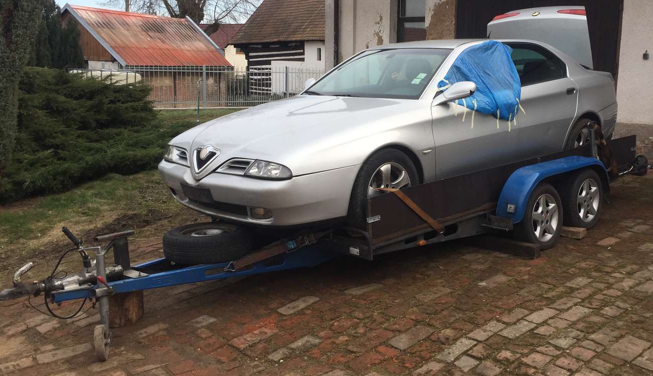 Jak už to tak bývá, jelo se kupovat typické večerní auto, jen bez té obvykle dodávané posmrtné masky. Alfa vypadala opuštěně, všechny gumy prázdné a baterie prosta všech voltů. Motor měl navíc rozebrané sání kvůli LPG, které se majitel rozhodl před přihlášením vymontovat, protože s ním to přihlásit nešlo. Jenže pak už nějak nebyl čas, chuť a schopnosti to složit zpět a auto zpojízdnit a tak stálo skoro celých deset let bez hnutí, což mu samozřejmě nepřidalo. Přítomný kamarád se mě snažil od koupě toho šrotu odradit a zpočátku jsem to viděl naprosto stejně. Když už jsme tu, chtělo to auto alespoň prolézt a nakonec jsem objevil, že auto mělo v Itálii jen jednoho majitele, jsou k němu kompletní příručky, klíče, kódové karty… prostě všechno co by mělo být. K tomu všemu karoserie zcela a naprosto prosta rzi a prodávající po drobném handlování i dal nějakou tu slevu, takže koupi bránilo jen to, že nepojízdné auto jsme neměli jak naložit. Alfa se ale rozhodla, že ještě chce žít a ne umřít v kopřivách, takže po chvíli zapojování hadiček, trubiček a konektorů v motorovém prostoru a připojení funkční baterie motor zavrčel a dokonce i většinu času běžel na většinu válců. Totálně zablokovaná zadní kola od deseti let ručky zarvané na doraz byla už jen drobnou komplikací a auto se podařilo naložit. A tak začal proces znovuuvedení do života…