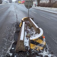 Nic se nestalo… Oba jsme vyvázli živí, bez zranění. Nikoho jsme nezabili ! Vystřelil boční stropní a sedačkový airback u řidiče. Na autu zůstaly neporušené jenom: spolujezdcovy a páté dvěře, kapota se světly, dva dny staré vyhřívané čelní sklo. Totálka. Viz foto. Auto kromě ostrůvku sejmulo kamión ze tří stran tím jak se kolem něj otočilo. Na chodníku v pravém pruhu asi dvacet metrů dál vzalo zadkem značku, čímž se srovnalo do parkovací polohy a zastavilo. Prý jsem celou dobu řídíl a snažil se něco dělat. Já si to nepamatuju. Ani nevím jestli jsem to zhoršil nebo tomu aspoň trochu pomohl. Onen ostrůvek, do kterého jsem to narval se skládal na jedné straně ze třech částí. Tím, že jsem vrazil do prvního se celá soustava posunula o kousek, ale poslední kus tou energií vyletěl do vzduchu, kde pokračoval asi 10 m přes poznávací značku za druhý ostrůvek do protisměru. Kdyby na tom přechodu někdo stál, je asi rozpůlený letícím sto kilovým betonem ( možná vážil ještě víc, když jsem se ho snažil posunout na bezpečné místo, skoro mi to nešlo ). Ochrana chodců? Odpověď nechám na Vás. Nikdo tam naštěstí nebyl. Další štěstí bylo, že beton letící do protisměru nesejmul žádné auto. Nějaký čas poté jsem se dozvěděl asi o dalších třech lidech, kteří na onom místě nechali auto, taktéž v totálce.
