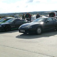 V podstatě přesně s prvním účastníkem zase pršet přestalo, ale vody už bylo na letištních panelech hodně. Takže podmínky byly hodně kruté a za autama byly slušné gejzíry vody. Obzvláště pro majitele semi-slick pneumatik to byla skutečná výzva. Ale trať zase pomalinku osychala a když jsem asi v jednu šel na řadu, tak už byla částečně oschlá, jen na některých místech bylo ještě vlhko. Jezdilo se stylem jedno zajřívací kolo a poté dvě měřená s pevným startem. Spokojený, že trať alespoň trochu oschla, jsem tedy najel do zahřívacího kola a v tom se pustil velmi slušný liják. Stěrače jeli naplno a já si říkal, jak tohle dopadne. Naštěstí pro mě tato přeprška jak byla silná, tak byla krátka. V podstatě už na konci zahřívacího kola jen lehce kapalo. Tak jsem se do toho pustil. Moje největší nevýhoda v této sezóně na okruzích, totiž staré obyčejné silniční pneumatiky, ukázaly se zde být naopak výhodou. Byla zima, takže se nepřehřívaly a navíc prostě měli klasickej silniční vzorek, takže celkem obstojně odvodňovali. Auto bylo výborné. Sice to klouzalo, ale dalo se to celkem v pohodě uřídit. Nikam jsem to neposlal, takže spokojenost. Z časem je to těžké, každý měl dost rozdílné podmínky. Někdo jel skoro na suchu, někdo zase dělal za autem bílou stěnu. Nicméně v rámci podmínek jsem spokojenej. Poté už bylo počasí ve stylu deset minut déšť, deset minut bez deště. Když všichni odjeli své měřené časy, trať se odklidila a pak už se jen blblo do aleluja. Na dráhu najelo krom normálních aut i několik driftovacích speciálů, takže o podívanou nouze nebyla. I přes to nevyzpytatelné počasí se akce povedla, byl zajištěn catering a dobrá nálada byla znát po celém areálu.