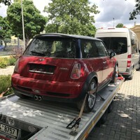 Auto bylo rozebrané, což jsem nevěděl. Nárazník, hlava, chladiče – prostě celý předek byl naházený v kufru. Prohlídl jsem si to, řekl si, že víc jak průměrný český plat jí za to nedám. Po chvíli smlouvání se to podařilo – koupil jsem nejlevnější Mini S v Evropě. Za týden jsem tedy přijel s přívěsem a auto si odvezl.
