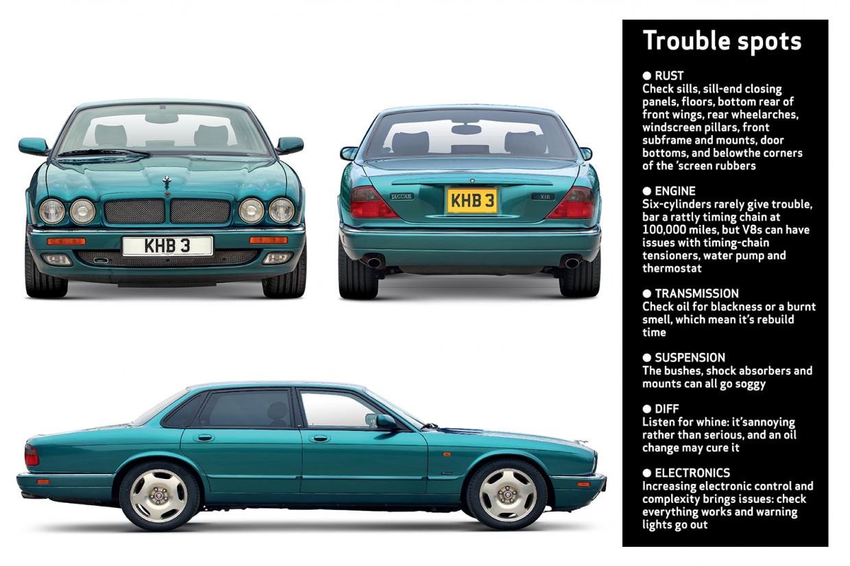 Doteková navi/info je poplatné době, dnes spíše elektrošrot. Hifi je od H/K (včt. subwooferu v platu) a má svou slávu bohužel také za sebou – koncové stupně v zesilovači by chtělo vyměnit (šum či umřelý kanál). Odhlučnění je celkem slušné, samo to není Lexus LS. Spolehlivostí je to stále Jag – už jsem zmínil zesík, dál umřel altík (pro výměnu stačí rozebrat půlku auta nebo vyndat motor), pumpa sekundárního vzduchu, lambda sonda… Místy se začíná objevovat hliníkový mor (dírka v laku po kamínku a pod ní prášek místo alu plechu).
